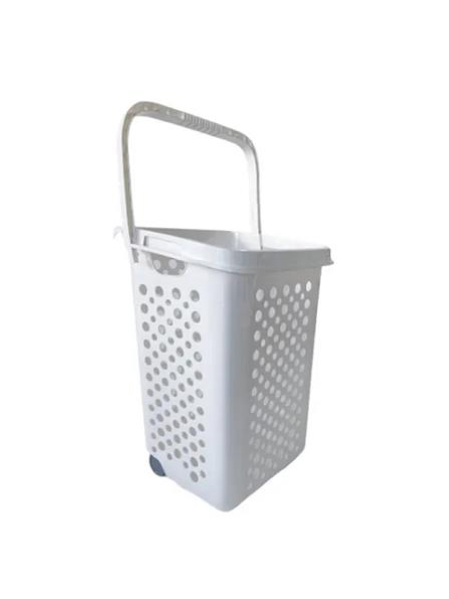 LAUNDRY BASKET WITH WHEELS PLIM WHITE 50X37X64CM