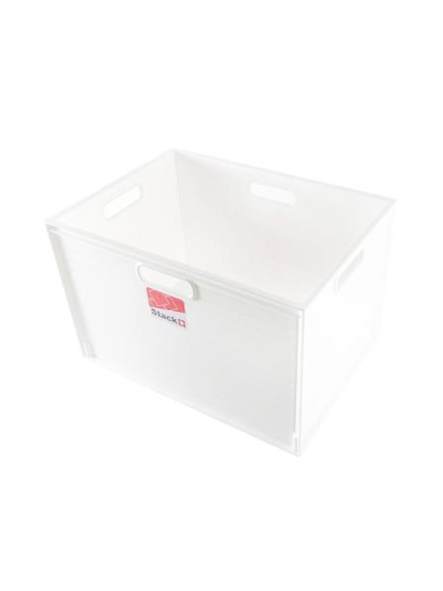 Corner-fitted rectangular stackable design provides space- saving storage